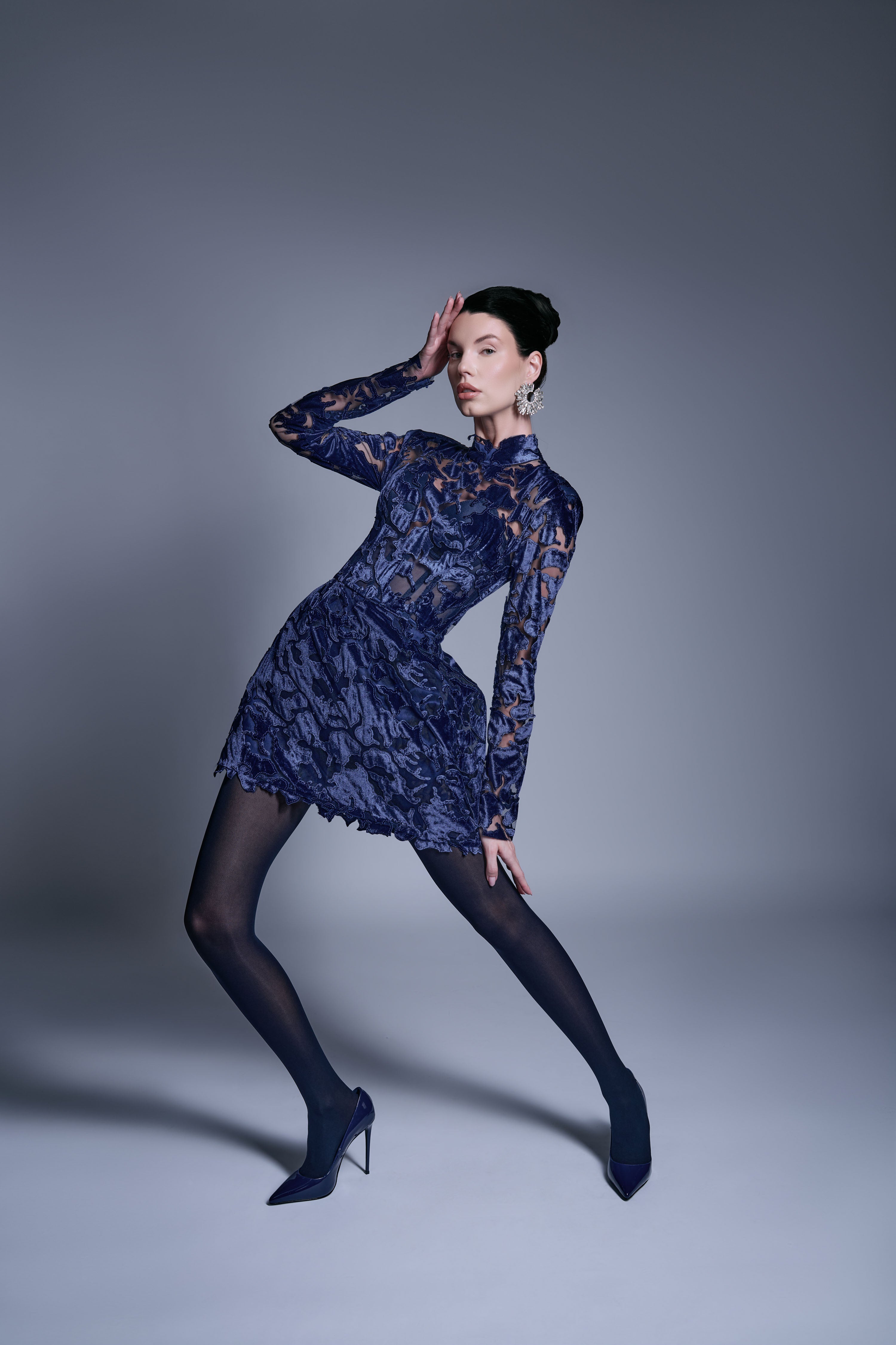 LASER CUT VELVET MIDI DRESS