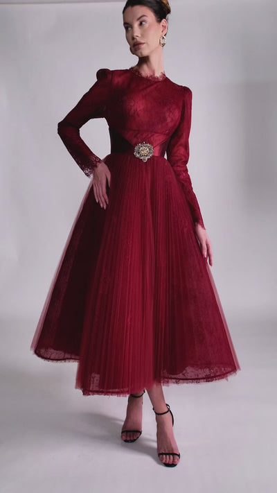 Rochie midi din dantela chantily