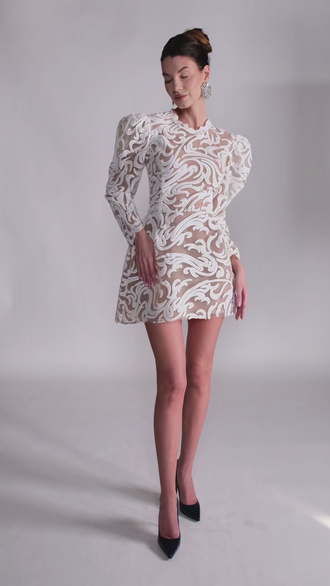 Rochie mini din catifea cu maneci bufante